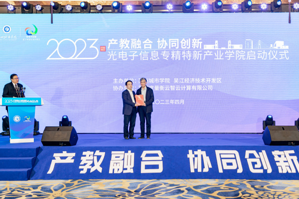 4月23日下午,齐聚美丽的吴江东太湖之畔,苏州城市学院举行光电子信息专精特新产业学院启动仪式。出席活动的领导和嘉宾有:中国科学院院士、南京大学教授祝世宁,苏州市教育局副局长项春雷,苏州市工信局副局长孙洪,吴江区副区长季恒义,吴江区副区长李红,吴江区工信局党委书记、局长王炜,吴江区委教育工委书记、区教育局局长季小峰,吴江经济技术开发区党工委委员、管委会副主任沈建兴,苏州佳智彩光电科技有限公司总经理刘品德,博众精工科技股份有限公司副总裁余松,苏州度量衡云智云计算有限公司董事长沈圻,苏州城市学院党委书记芮国强,苏州城市学院党委副书记周玉玲,苏州城市学院副校长周高,苏州城市学院副校长高雷。吴江经济技术开发区有关部门领导、合作企业代表、苏州城市学院有关职能部门、二级学院主要负责人及师生代表也参加仪式。仪式由苏州城市学院校长赵志宏主持。