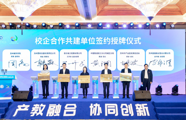 产业学院首批共建单位有10家,周高为校企合作共建单位签约授牌。共建单位包括博众精工科技股份有限公司、恒美电子科技股份有限公司、苏大维格光电科技股份有限公司、苏州长光华芯光电技术股份有限公司、东南电梯股份有限公司、苏州慧利仪器有限责任公司、普元电力发展有限公司、中国联通吴江分公司城区分局、苏州市产业园发展促进会、苏州度量衡云智云计算公司。