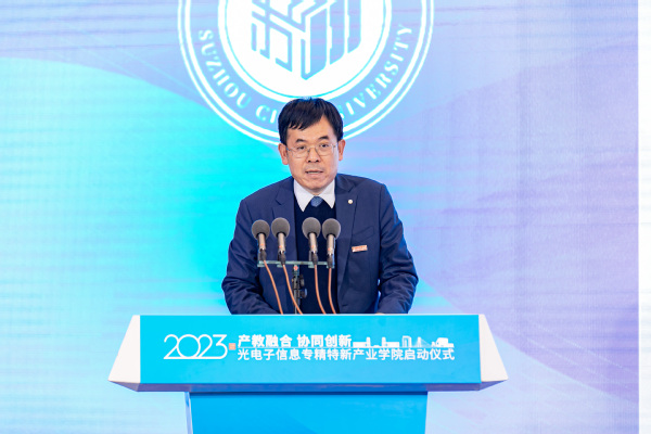 今天是学校光电子信息产业学院的启动仪式,也是学校建设的新起点,学校将以此为契机,进一步加强与共建单位的深入合作,共同探索产业链、创新链、教育链、人才链有效衔接机制,为地方培养更多适应和引领光电子信息技术和相关产业领域发展的高素质创新型、应用型和复合型人才,产出更多有影响力的科技创新成果,助力学校事业高质量发展;同时,努力将光电子信息产业学院打造成为全国专精特新产业学院的标杆,赋能苏州市光子和电子信息“产业集群”向“创新集群”高质量演变和跃升,赋能苏州专精特新战略发展,为全面推进中国式现代化建设苏州新实践作出新的更大贡献。