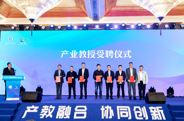 产业学院教授代表、博众精工科技股份有限公司副总裁余松发言。他表示,我国正处在产业结构调整期,我国制造进入了以高复杂度,高集成化的智能制造时代,对新时代的人才和企业发展提出新的课题和挑战。具备规划管理能力,专业技术科技知识,与机器和AI合作的跨学科交叉的复合人才培养尤为重要。博众愿与大家共同努力,链接校企资源,以育人为本,以实践为基,创新产教融合发展模式,共同开创教融合新局面,为培养大批高素质创新人才和技术技能人才,加快发展壮大现代产业体系贡献力量。