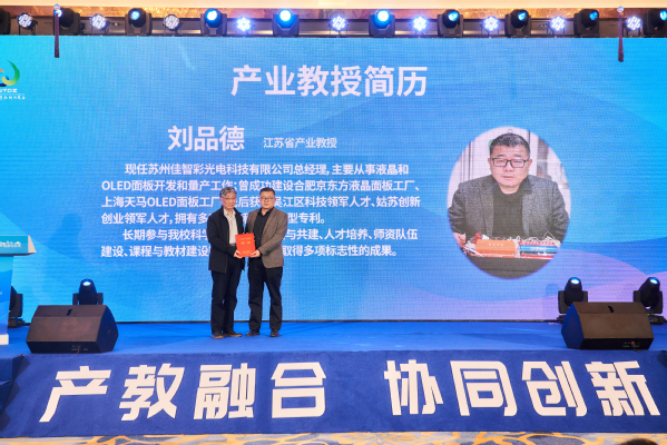 应用型人才培养,需要双师型师资,特别是产业教授的加盟。2023年2月,苏州城市学院获批3名江苏省产业教授。祝世宁为江苏省产业教授代表、苏州佳智彩光电科技有限公司总经理刘品德颁发聘书。经苏州城市学院党委常委会研究,决定首批聘任7位产业教授:苏州长光华芯光电技术股份有限公司光学技术部总监俞浩、苏州长光华芯光电技术股份有限公司研究员周立、东南电梯股份有限公司副总工程师赵震、恒美电子科技股份有限公司研发总监王智晶、普元电力发展有限公司技术总监朱伟敏、苏州度量衡云智云计算有限公司副总经理高峰、博众精工科技股份有限公司副总裁余松,孙洪为各位教授颁发聘书。