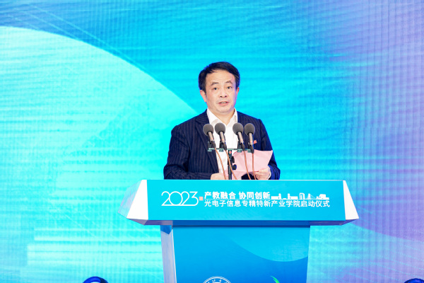 产业学院名誉理事长、中国科学院院士祝世宁讲话。他表示,苏州城市学院大力布局和发展光电子学科专业,汇聚一流师资队伍,大力培养光电子人才,这是苏州城市学院扎根城市、服务支撑地方经济社会发展的重要体现。苏州城市学院与苏州光电子行业的专精特新企业强强联合、精诚合作,成功获批工信部首批专精特新产业学院,这既是苏州城市学院发展的一件大事,也是苏州光子产业的一件喜事,今天产业学院正式挂牌更是具有里程碑式的重要意义。
