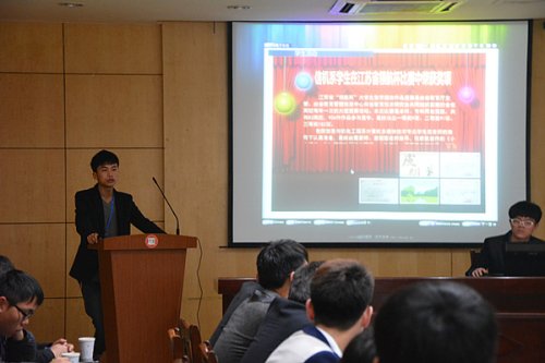 各高校代表依次上台展示本校计算机专业学生在专业学习、创业就业、组织管理等方面所取得的成就。展示过后,我院计算科学系团总支、学生分会指导老师魏秋江发言。魏秋江表达了对各高校学生到访的欢迎,赞扬了各高校的特点和独到之处,并对以后举办活动提出相关意见,强调了交流合作的重要性。