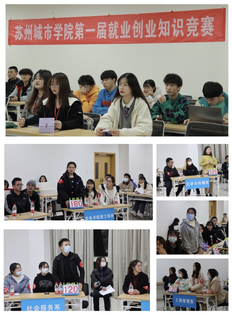 举办苏州城市学院首届就业创业知识竞赛,引导和帮助学生掌握就创业知识,调适求职心态,提升技能贮备,比赛分为团队赛与个人赛,最终工商管理系荣获团队一等奖,21汉语言文学(Z)于先锐荣获个人一等奖。